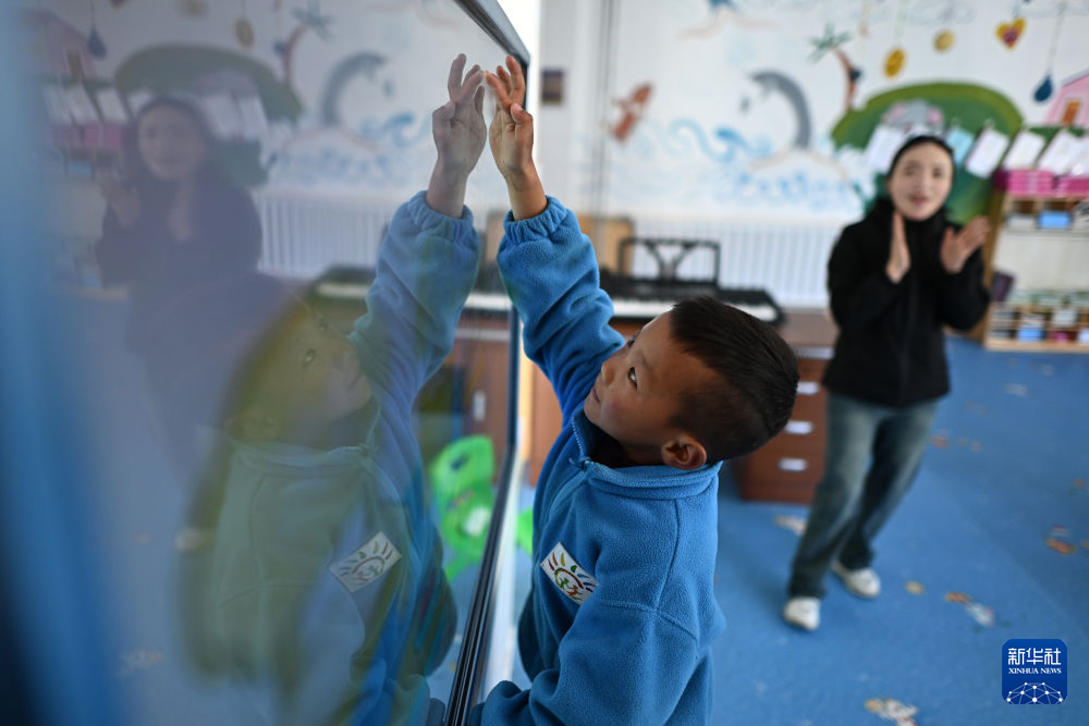 在曲麻萊縣葉格鄉(xiāng)幼兒園,小朋友們在課堂上(9月13日攝)。新華社 張宏祥 攝