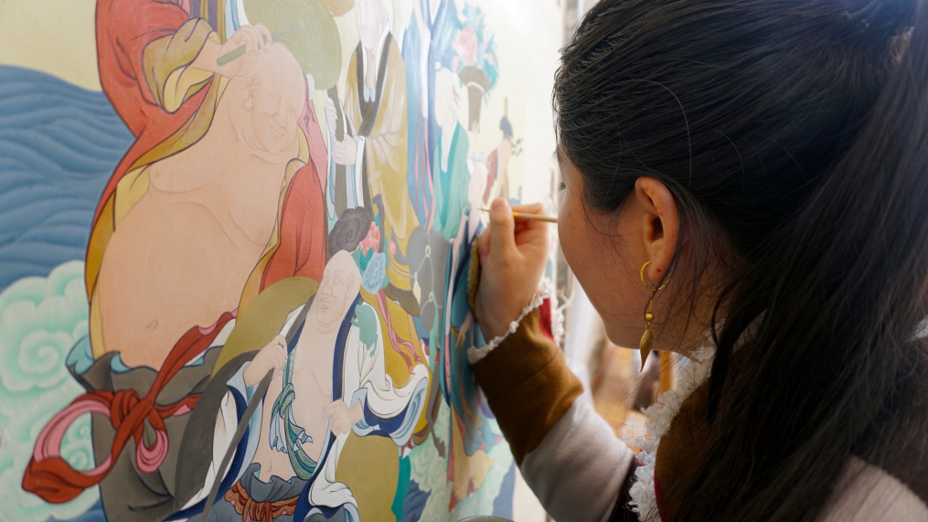 “熱貢”在藏語(yǔ)中意為“金色谷地”。熱貢桑杰唐卡畫院坐落在有著“熱貢藝術(shù)之鄉(xiāng)”美譽(yù)的青海省黃南藏族自治州同仁市,2017年建成運(yùn)行,是當(dāng)?shù)匾患曳俏镔|(zhì)文化遺產(chǎn)綜合傳習(xí)中心。隨著熱貢唐卡知名度不斷提高,全國(guó)各地慕名而來(lái)的游客也越來(lái)越多。