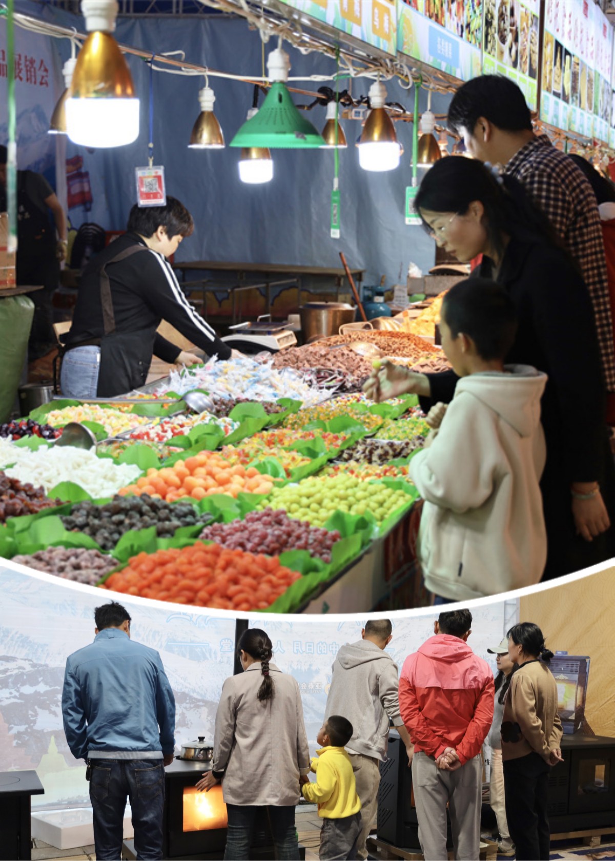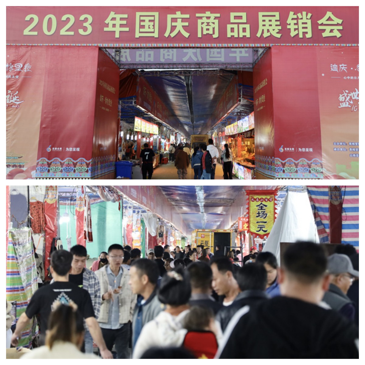 “雙節(jié)”期間,香格里拉市區(qū)納赤東路上的國慶商品展銷會內(nèi)人頭攢動。