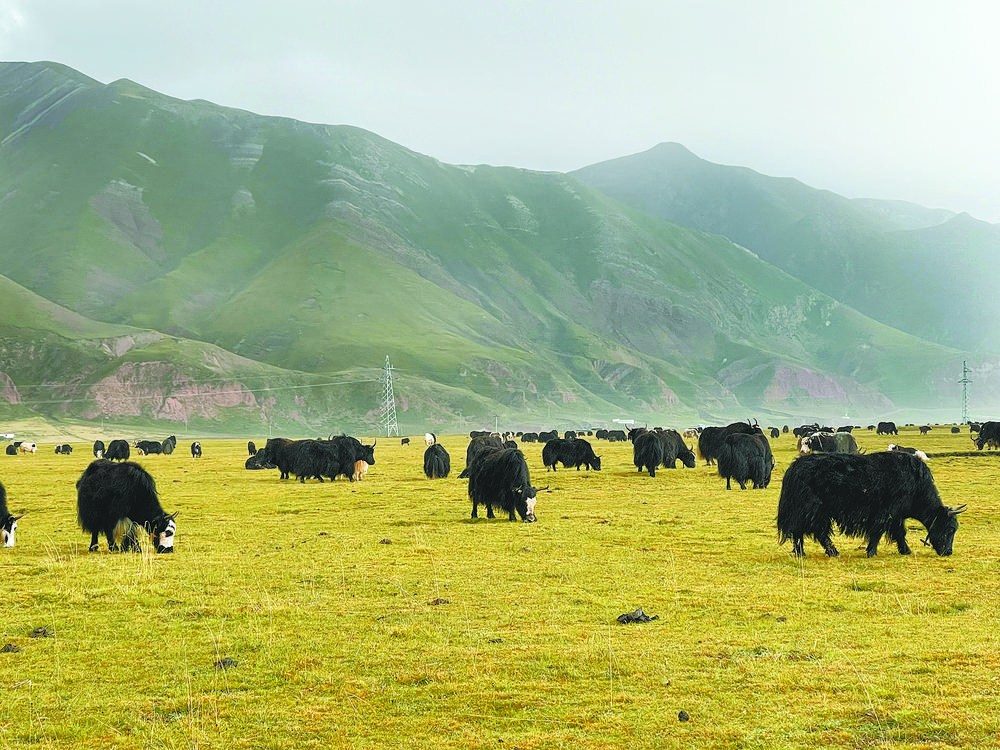 合作社草場上的牦牛群。
