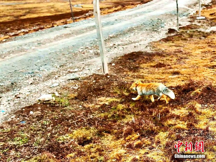 圖為藏狐準(zhǔn)備穿過(guò)草原牧道。張世偉 攝