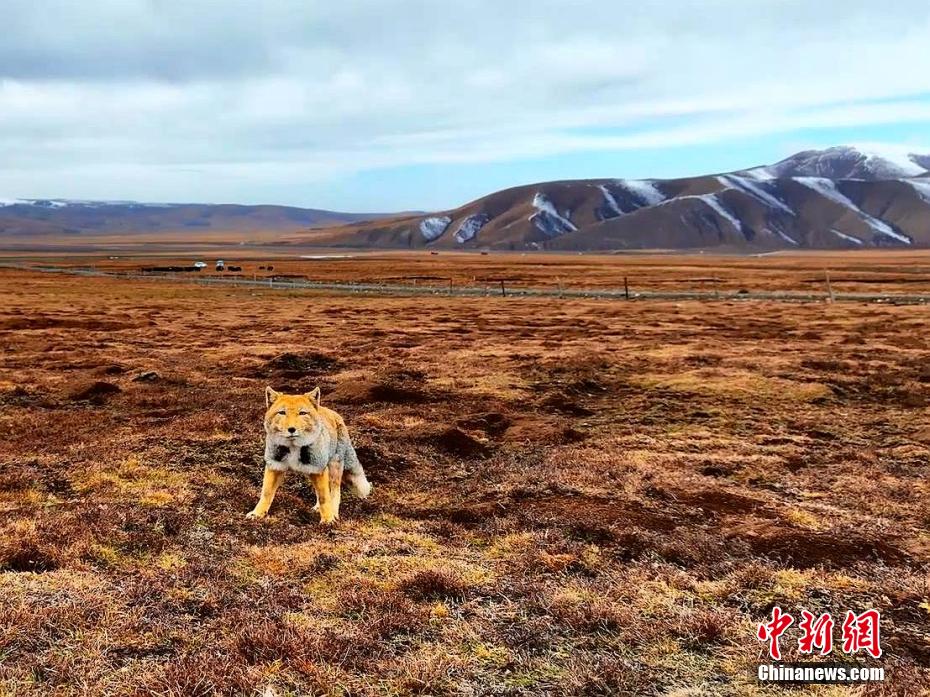圖為“丑萌”藏狐駐足停留。張世偉 攝