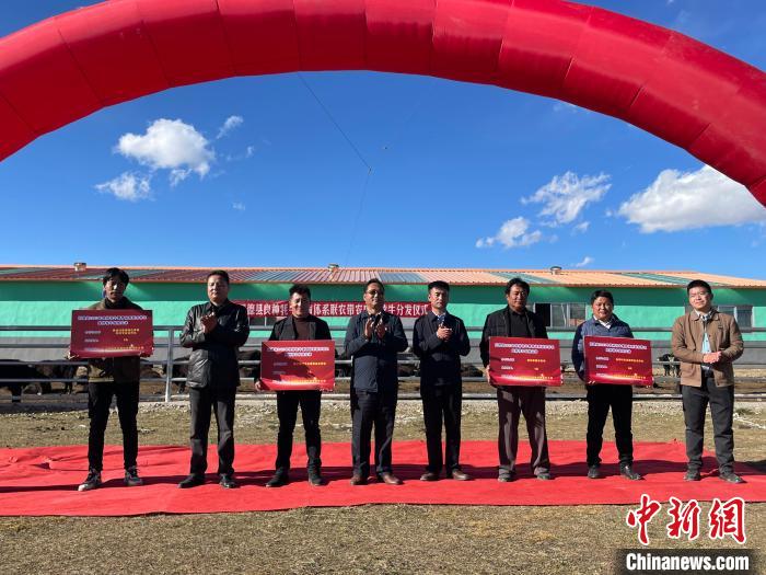 圖為同德縣牦牛產(chǎn)業(yè)園為牧民分發(fā)良種牛犢儀式現(xiàn)場。陳宗淇 攝