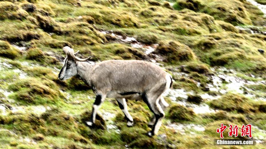 高原深秋,在青海湖北岸的青海省海北藏族自治州海晏縣甘子河鄉(xiāng)境內,攝影師拍攝到成群巖羊在溫泉濕地游走覓食。畫面中,巖羊“拖家?guī)Э凇痹谏狡律稀L雪中奔跑覓食,甚是靈動。據(jù)悉,拍攝到成群巖羊的區(qū)域有一處熱水溫泉,溫泉四季噴涌不竭,水溫達57到60度,所以當?shù)匦纬商赜械男夂颍屔钋飼r的草原依然青綠。巖羊是國家二級保護動物,擅長“飛檐走壁”,在地形復雜的山崖上也能如履平地,青灰色的毛色與巖石顏色極為相近,不易察覺。