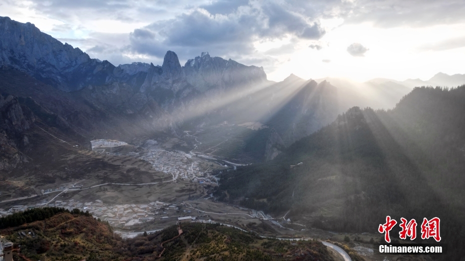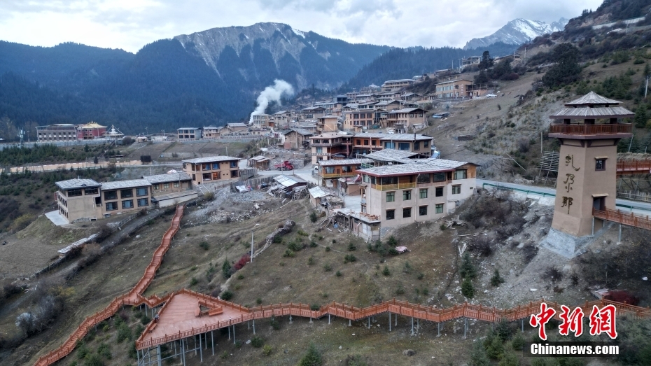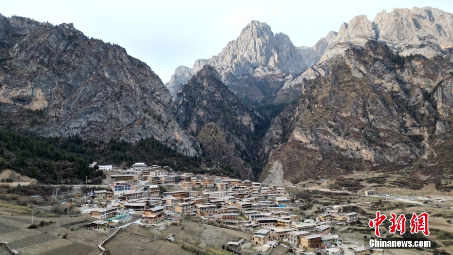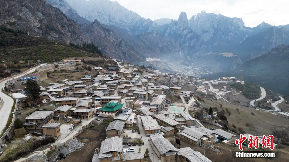 11月3日,航拍甘肅省甘南藏族自治州迭部縣扎尕那景區(qū)藏族村落的建筑。(無(wú)人機(jī)照片)中新社記者 九美旦增 攝