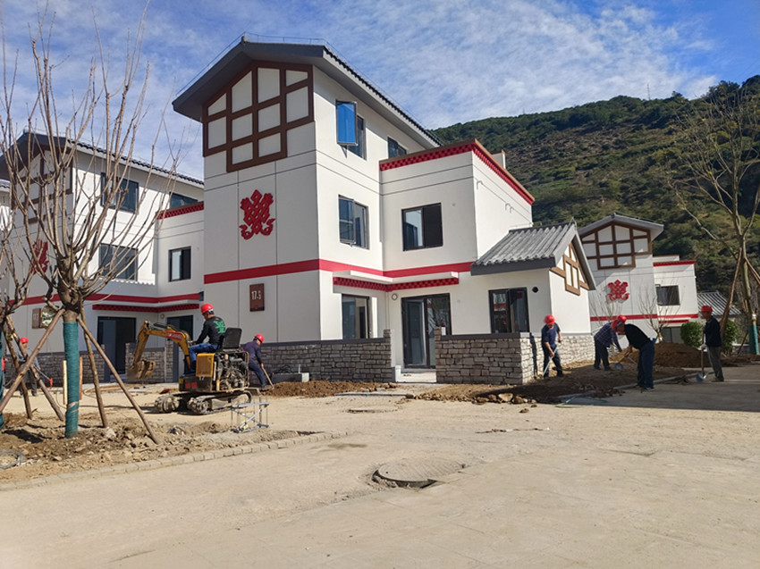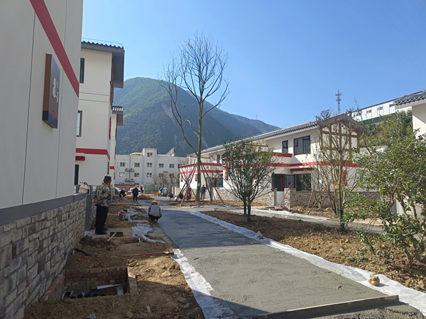 11月5日,記者走進(jìn)瀘定縣德威鎮(zhèn)奎武村“9·5”瀘定地震災(zāi)后重建集中安置點(diǎn),只見(jiàn)一幢幢繪有“如意結(jié)”和穿斗裝飾等瀘定傳統(tǒng)建筑元素以及“瀘定紅”“紅飄帶”等民族特色的安置房沿大渡河畔依次排開(kāi),一條條寬敞平整的水泥硬化道路將這些風(fēng)貌一致、戶(hù)型合理、結(jié)構(gòu)安全的安置房屋串聯(lián)起來(lái)。幾十名工人正在安置點(diǎn)內(nèi)忙碌,有的在鋪設(shè)路面、有的在栽種綠化樹(shù)、有的在搬運(yùn)廢渣……,拿到鑰匙的部分村民正在進(jìn)行室內(nèi)裝修,現(xiàn)場(chǎng)一派繁忙景象。