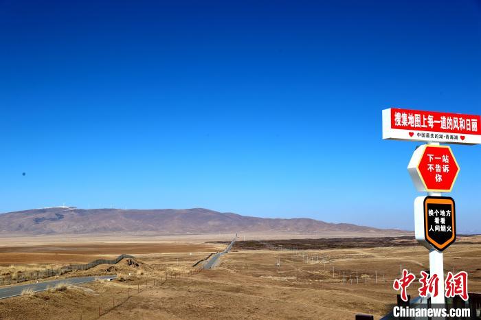 11月11日,記者驅車來到青海省海北藏族自治州海晏縣金沙灣,連綿沙丘與蔚藍湖水相接景色優(yōu)美。金沙灣北距海北藏族自治州首府西海鎮(zhèn)約25公里、西距青海湖約2公里,以觀看金色的沙漠風光為主要特色。