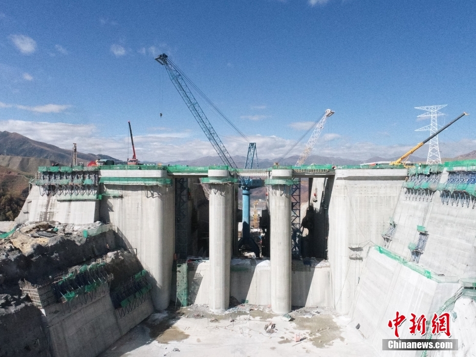 圖為瑪爾擋水電站下閘蓄水現(xiàn)場,工作人員正在檢查下閘蓄水設(shè)備情況。瑪爾擋水電站 供圖