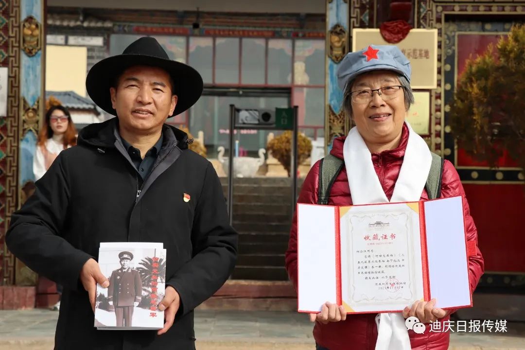 迪慶紅軍長(zhǎng)征博物館館長(zhǎng)潘高原代表博物館接收了這些珍貴的革命資料、實(shí)物,向他們授予了榮譽(yù)證書并在博物館前合影留念。