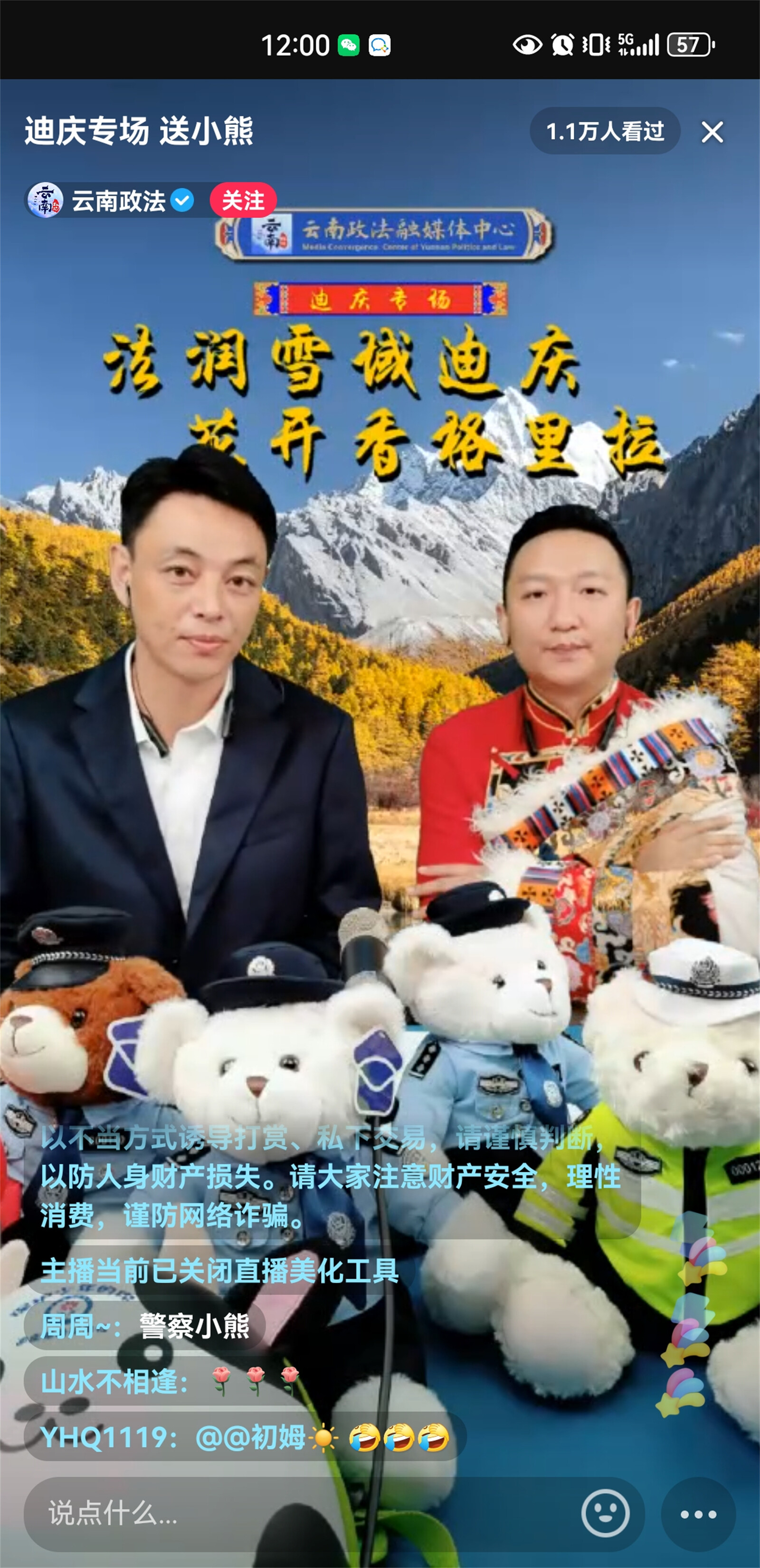 近日,迪慶州政法干警走進(jìn)云南政法普法強(qiáng)基直播間開展“法潤雪域迪慶、花開香格里拉”迪慶州普法專場直播,直播聚焦群眾關(guān)切,緊密聯(lián)系時事熱點,帶廣大網(wǎng)友體驗了一場內(nèi)容豐富的普法之旅,共吸引9.1萬人觀看,獲點贊超10.4萬。