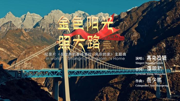 歌曲《金色陽光照大路》由知名詞作家蔣明初作詞、云南省青年作曲家岳少鵬作曲、藏族青年歌手嘉央拉姆演唱,云南省人民政府新聞辦公室和中國新聞社云南分社聯合出品,于中國新聞網首發(fā)。歌曲用直抒胸臆的筆觸,勾勒出雪山之下的一片凈土,描繪世代生活于此的藏族民眾安定祥和的生活。