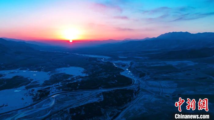 航拍祁連山日出美景:天空多彩山河壯麗