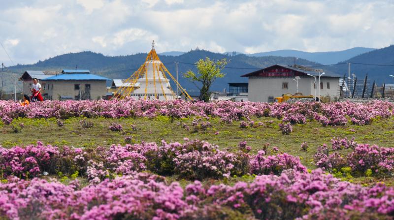 每年5月下旬至6月中旬,小中甸草原就會被多彩絢爛的杜鵑花、狼毒花以及各種不知名的小花小草包圍,變成一片花的海洋,吸引來自各地的游客駐足。這時(shí)的小中甸,每個(gè)角度都是美景,花海連著傳統(tǒng)藏族民居,以及遠(yuǎn)處的雪山和森林,恍若走進(jìn)了神話中的仙境,這里也是人們拍寫真照、婚紗照的絕好取景地。