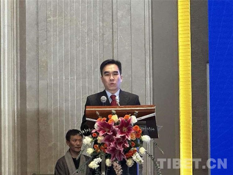圖為中國藏學(xué)出版社社長洪濤致辭