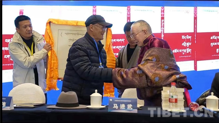 圖為與會嘉賓向馬進(jìn)武教授敬獻(xiàn)哈達(dá)