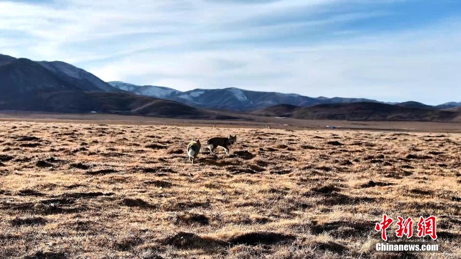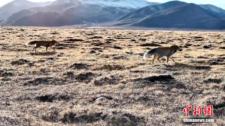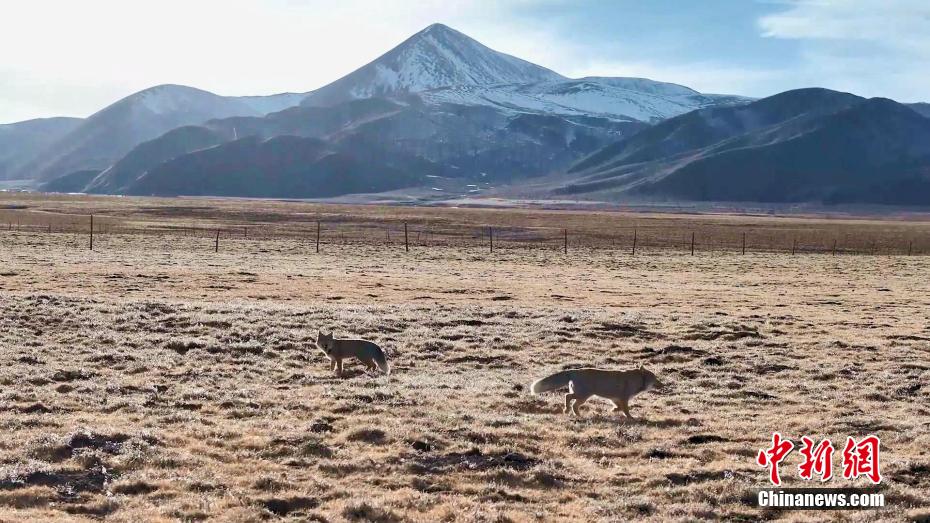 圖為兩只藏狐互動(dòng)“溜達(dá)”。包雷 攝