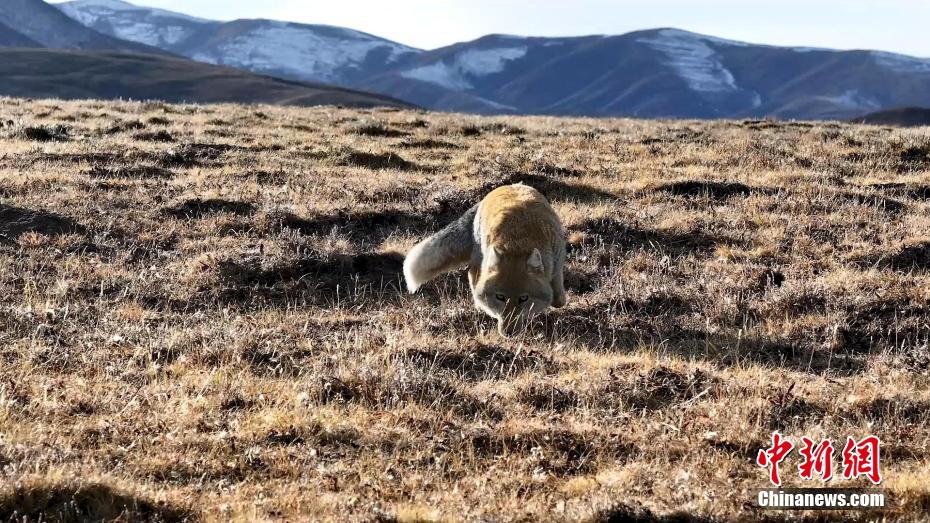青海祁連:藏狐結(jié)伴覓食 “方臉”出鏡又萌又兇
