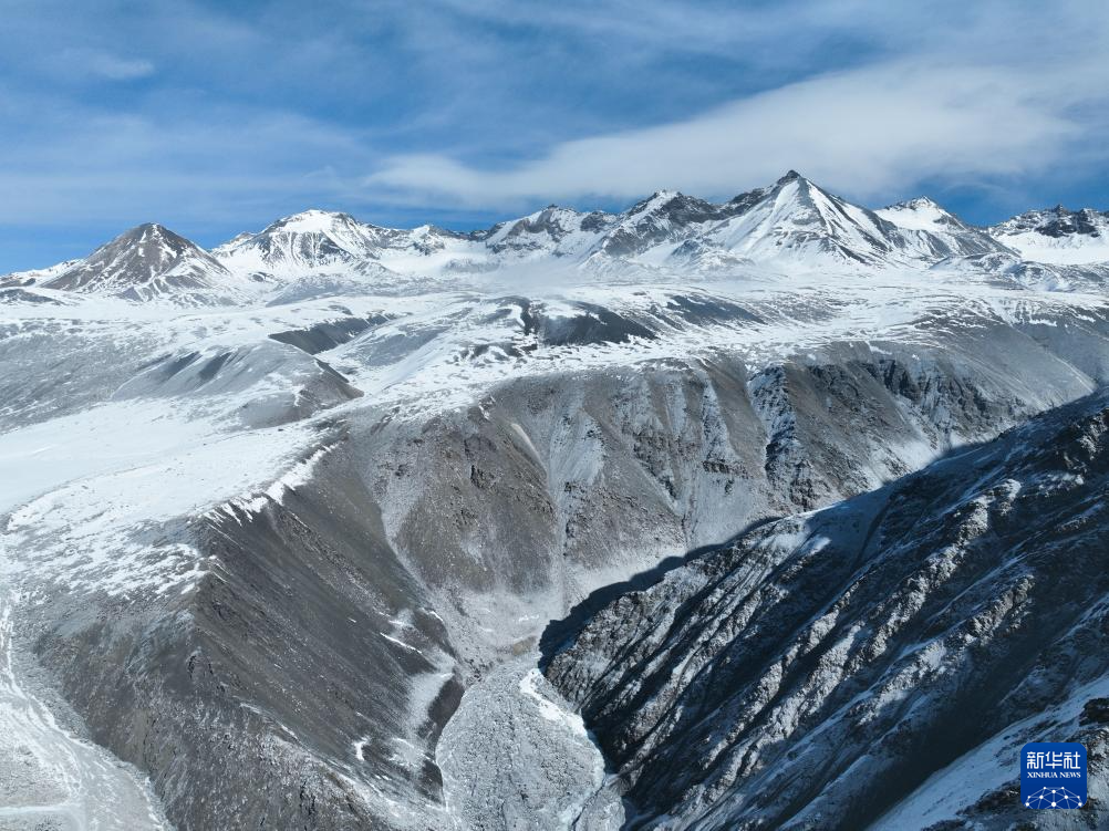 這是1月23日在青海省海北藏族自治州門源回族自治縣境內(nèi)拍攝的崗什卡雪峰(無人機全景照片)。新華社記者 張龍 攝