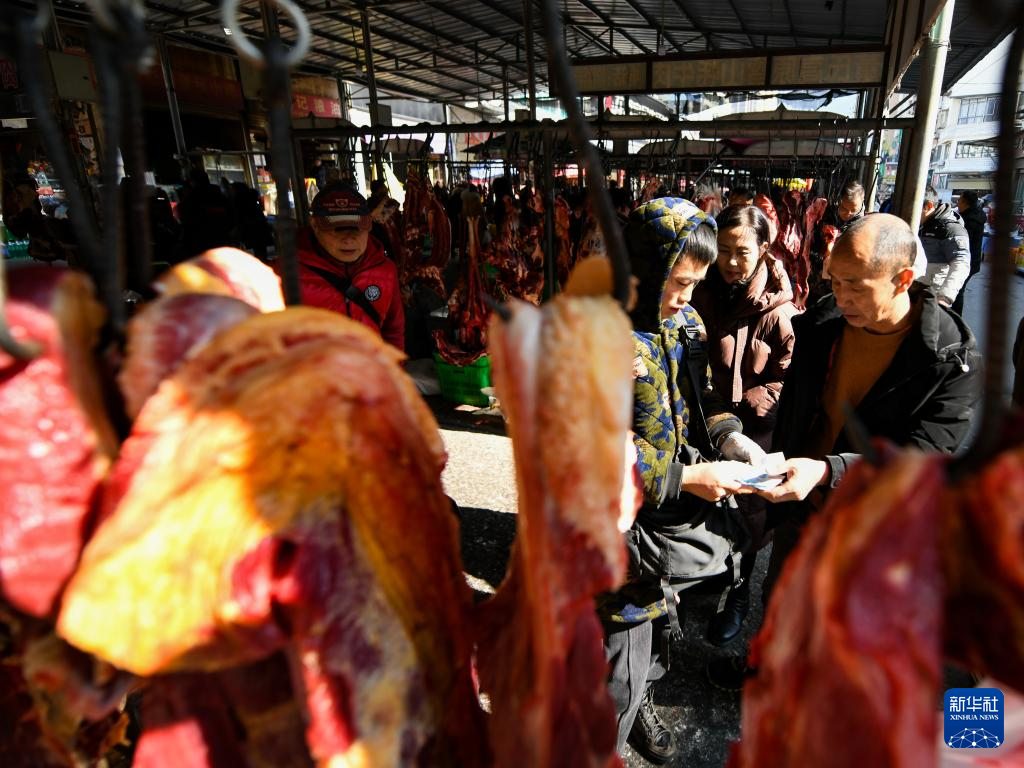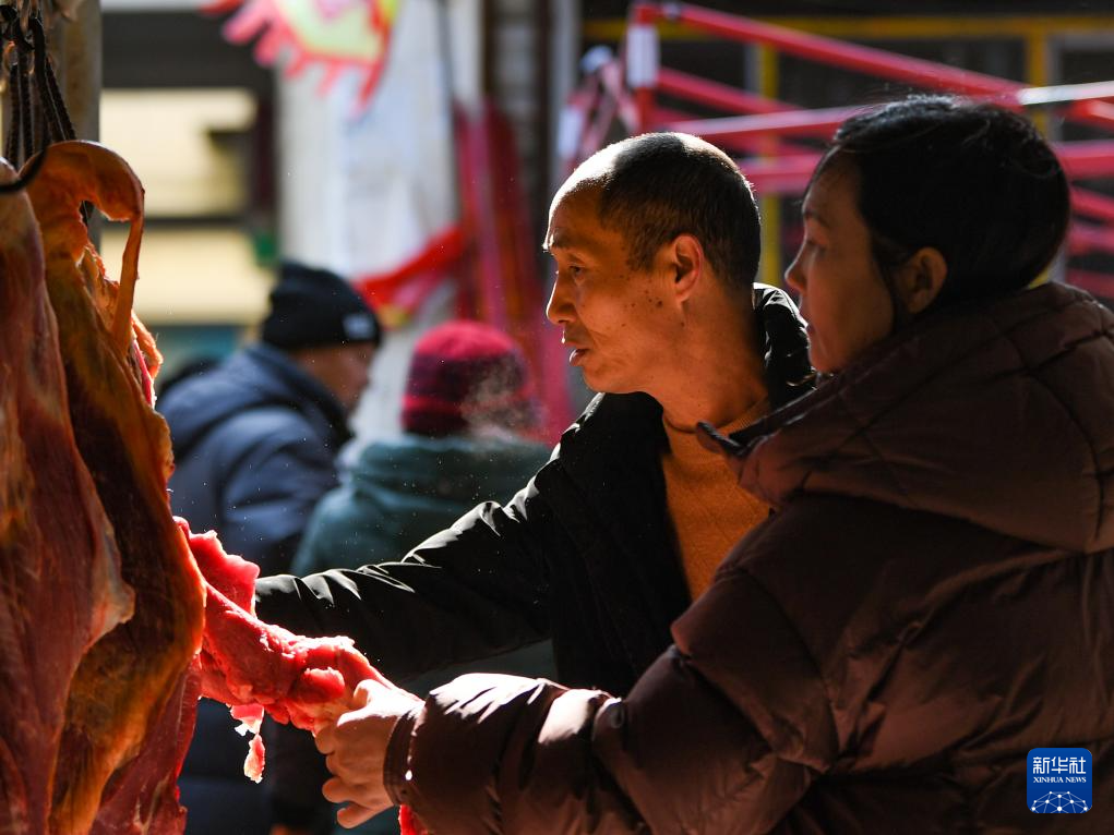 1月28日,游客在四川阿壩藏族羌族自治州茂縣農(nóng)貿(mào)市場(chǎng)選購(gòu)牦牛肉。新華社記者 王曦 攝