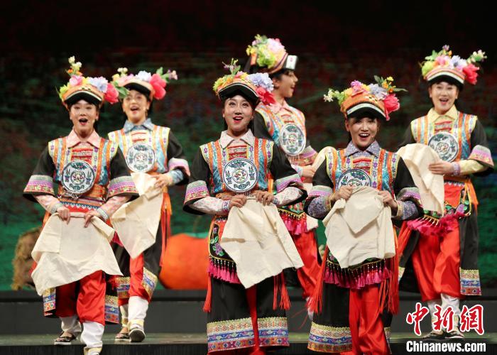 2021年5月17日晚,甘肅甘南州藏族歌舞劇院演出的音樂劇《達瑪花開》在蘭州首演。(資料圖)閆姣 攝