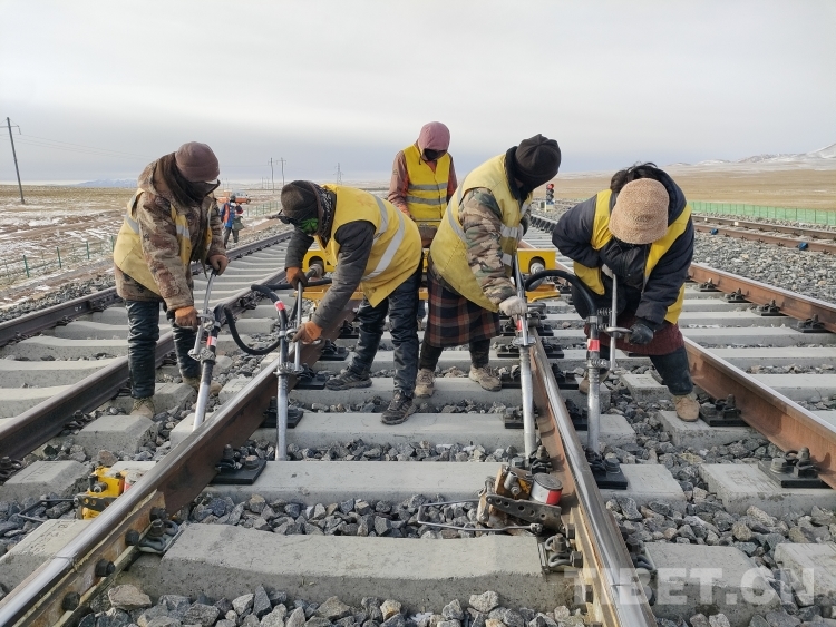中國(guó)西藏網(wǎng)訊 2月9日,大年三十,中國(guó)鐵路青藏集團(tuán)有限公司格爾木工務(wù)段沱沱河線路車間通天河線路工區(qū)的10名職工驅(qū)車1小時(shí)來(lái)到青藏鐵路塘崗站,對(duì)鐵路線路設(shè)備病害進(jìn)行整治。