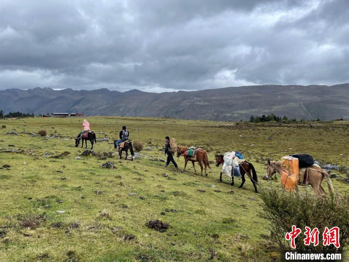 圖為夏天到尼汝村騎馬徒步露營(yíng)的游客。中新社記者 繆超 攝