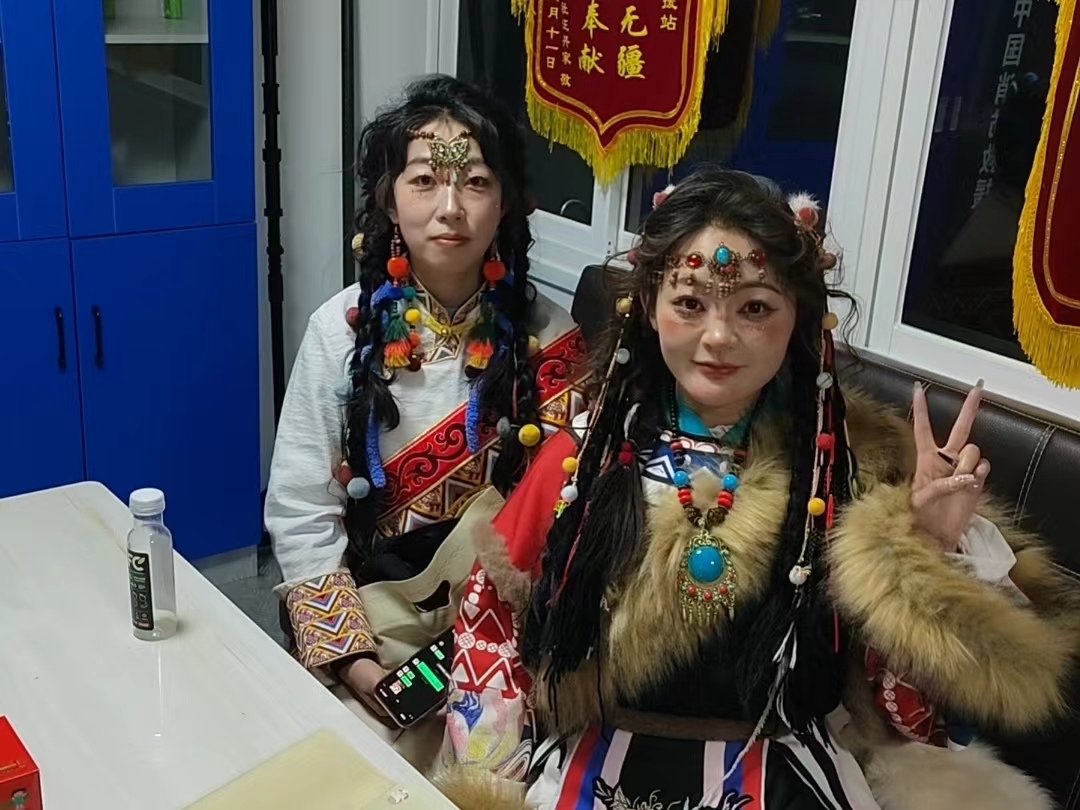 1月30日下午17時(shí)20分許,服務(wù)站迎來(lái)兩位身著藏式服裝的“卓瑪”。經(jīng)隊(duì)員了解得知,兩位“卓瑪”是外地過(guò)來(lái)旅游的,準(zhǔn)備到寺院內(nèi)部去旅拍,手上的包實(shí)在太重了,希望可以把包寄存在服務(wù)站內(nèi)。隊(duì)員立即接過(guò)她們手中的包將其安置好,并細(xì)心問(wèn)到包內(nèi)是否有貴重物品之類(lèi)的,確定好包內(nèi)的物品后便向他們說(shuō)道:“兩位小姐姐,你們就安心去拍攝吧,不著急,拍完后回到這里取你們的東西就可以了,我們給你們守著?!彪S后兩位來(lái)自遠(yuǎn)方的“卓瑪”便開(kāi)始了他們愉快的旅拍。其實(shí)大家都知道,這場(chǎng)旅拍沒(méi)有1個(gè)小時(shí)是不可能結(jié)束的,而這個(gè)點(diǎn)也快接近了隊(duì)員們歸隊(duì)吃晚飯的時(shí)間點(diǎn)了,但是隊(duì)員們沒(méi)有考慮吃飯的事,他們想的只是為素不相識(shí)的遠(yuǎn)方朋友盡一份義務(wù),讓他們的旅拍之行無(wú)后顧之憂。19時(shí)30分左右,兩位“卓瑪”回到了服務(wù)站,隊(duì)員隨即邀請(qǐng)他們坐下來(lái)休息會(huì)喝杯熱水,夜晚天氣較冷讓他們先烤會(huì)火暖一下身子再出發(fā)。