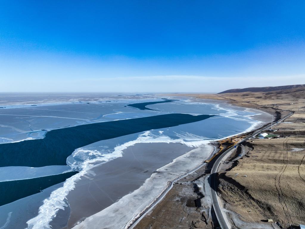 1月25日,青海省海南藏族自治州共和縣境內(nèi)的青海湖一角(無(wú)人機(jī)照片)。新華社記者 耿輝凰 攝