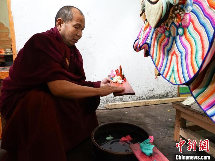 資料圖為2023年藝僧羅智正在制作酥油花。中新社記者 馬銘言 攝