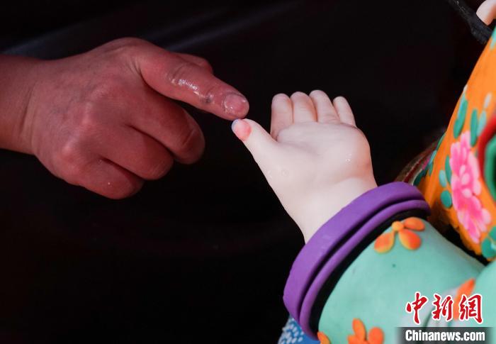 資料圖為2023年藝僧手蘸冰水制作酥油花。中新社記者 馬銘言 攝