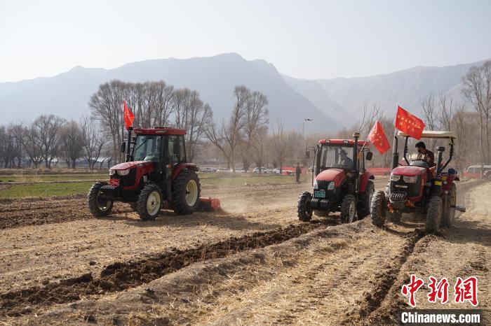 圖為村民正在進(jìn)行機(jī)械耕作。馬銘言 攝