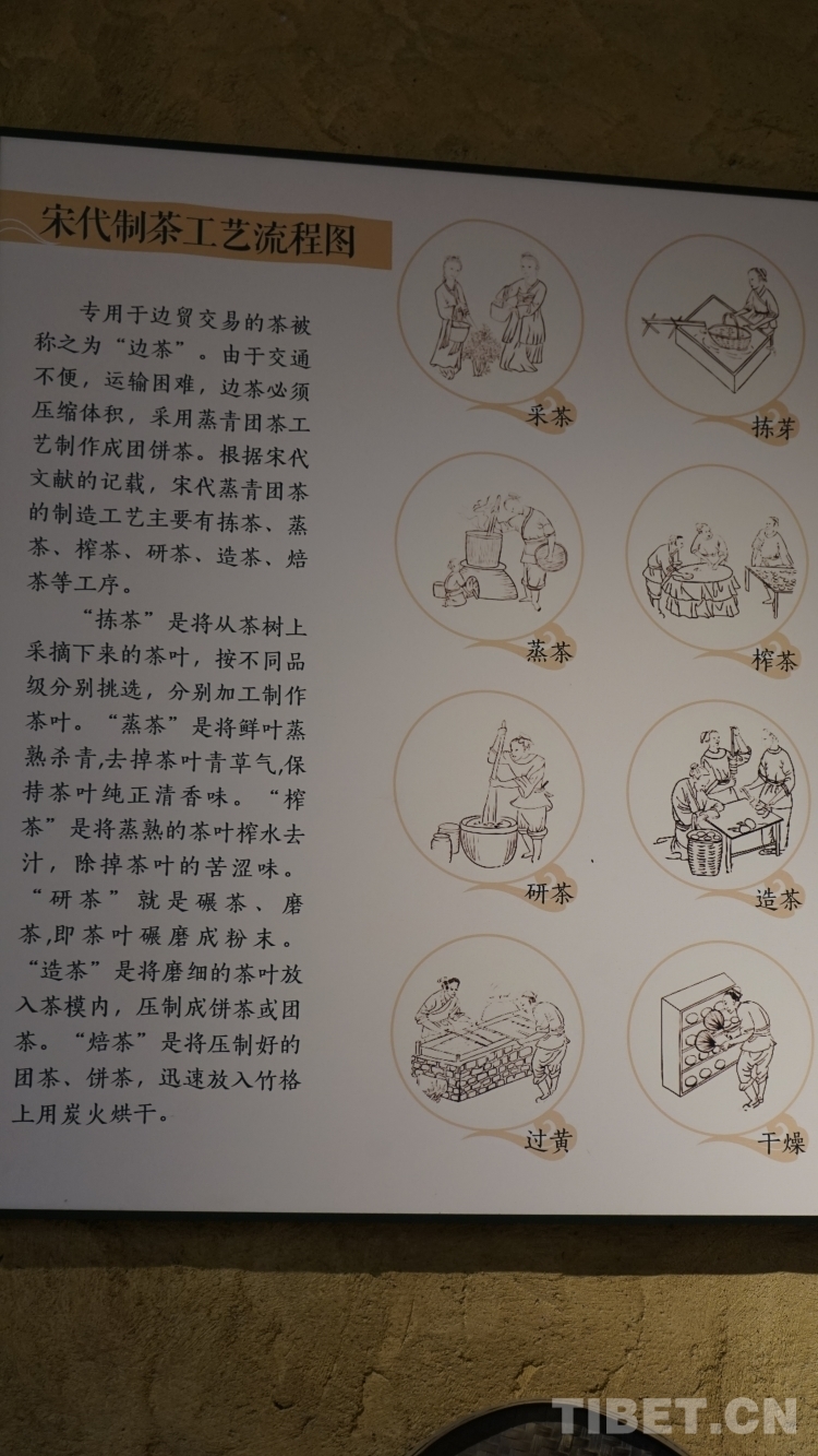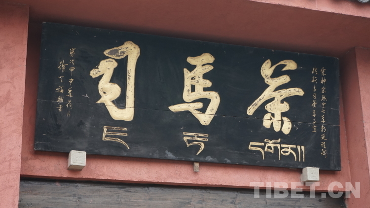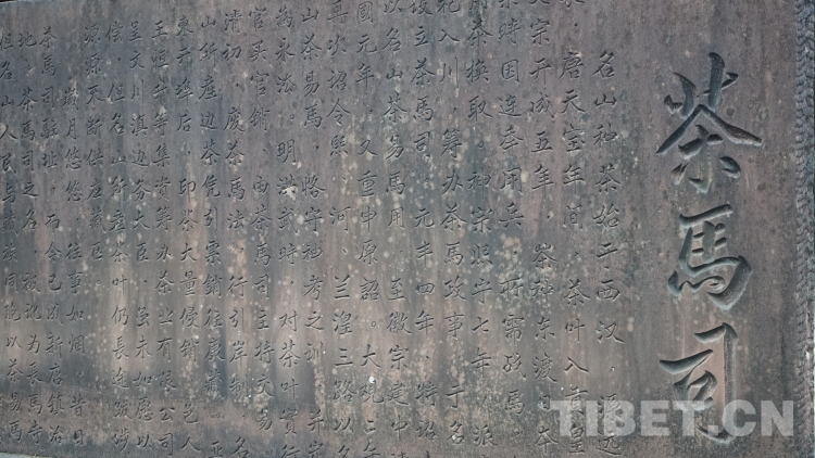 推開(kāi)茶馬司的大門,出現(xiàn)在眼前的“茶馬司”石碑用漢藏兩種文字記錄著茶馬司的興衰歷史?!八螘r(shí)因連年用兵,所需戰(zhàn)馬,多用茶換取。神宗熙寧七年,派李杞入川,籌辦茶馬政事,于名山,以名山茶易馬用……明洪武時(shí),對(duì)茶葉實(shí)行官買官銷,由茶馬司主持交易……”