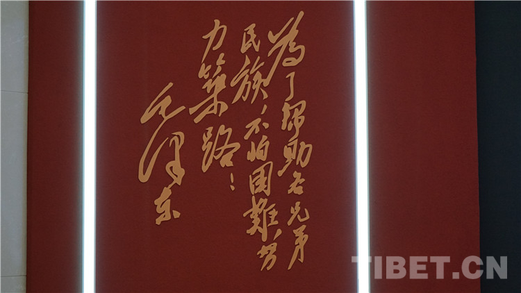 館內序廳播放著雅康高速公路的宣傳片,兩側展板上展示的是毛主席關于修建“兩路”的重要批示,包括1952年8月為康藏公路開工題詞,和1954年12月為慶賀康藏、青藏公路通車題詞。