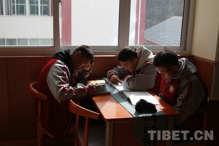 圖為陽光下看書的學生們 攝影:登真巴珍