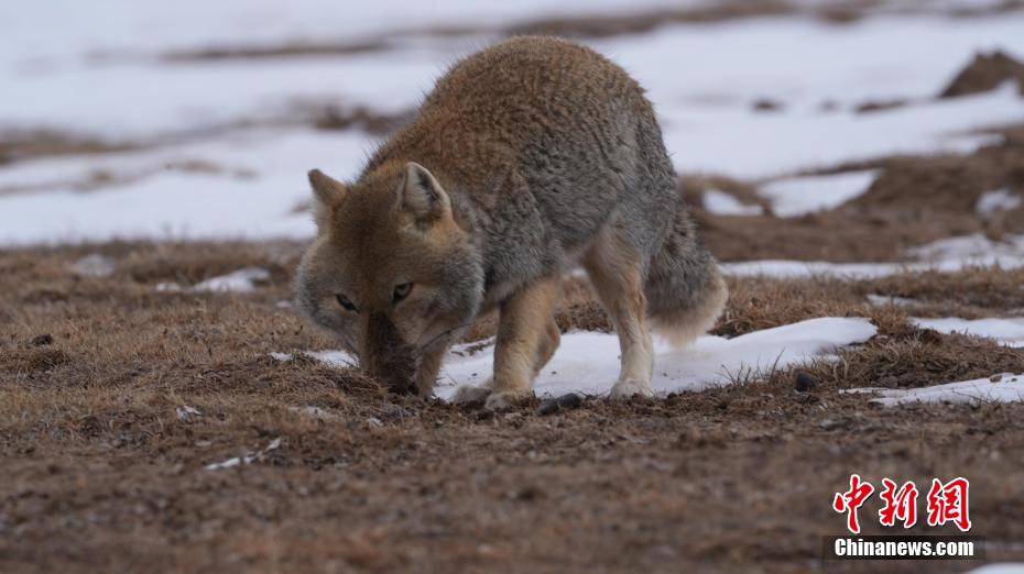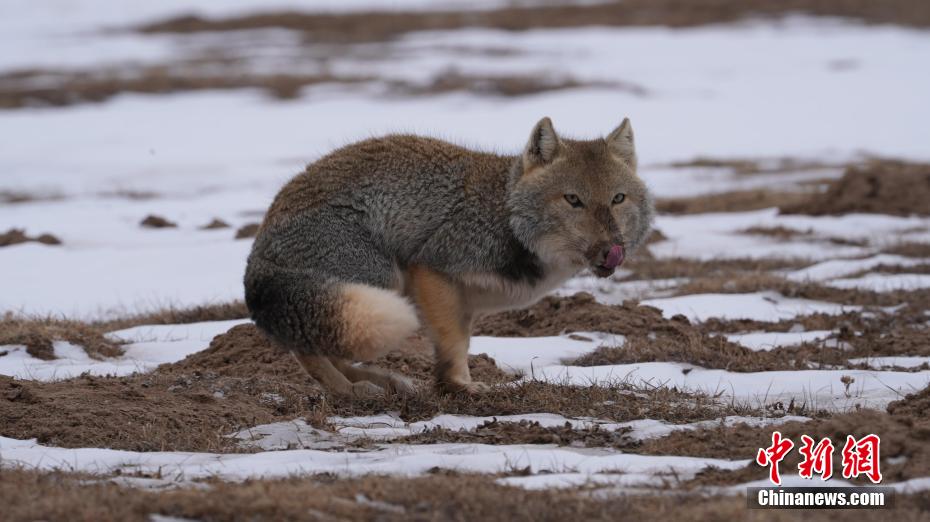 青海祁連:藏狐結(jié)伴覓食 “方臉”出鏡又萌又兇