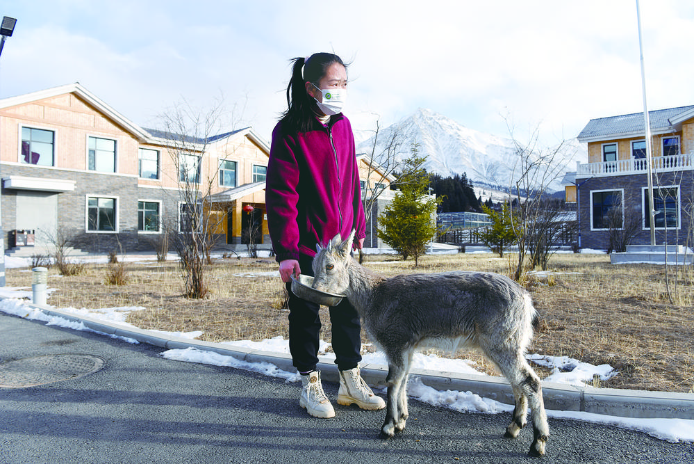 工作人員喂養(yǎng)小巖羊。張多鈞 攝