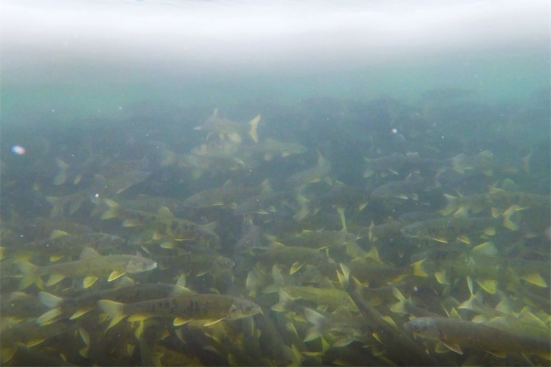 青海湖冰面下的裸鯉。俄日藏俄 攝