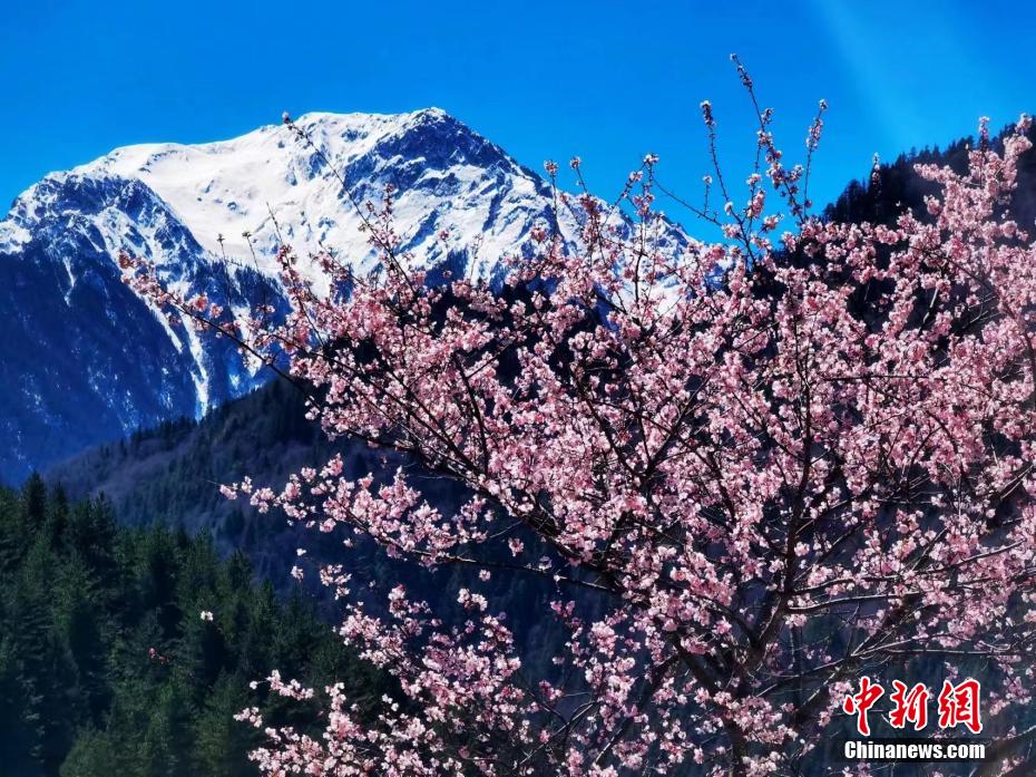 九寨溝野桃花盛開 漫山花海如詩(shī)如畫