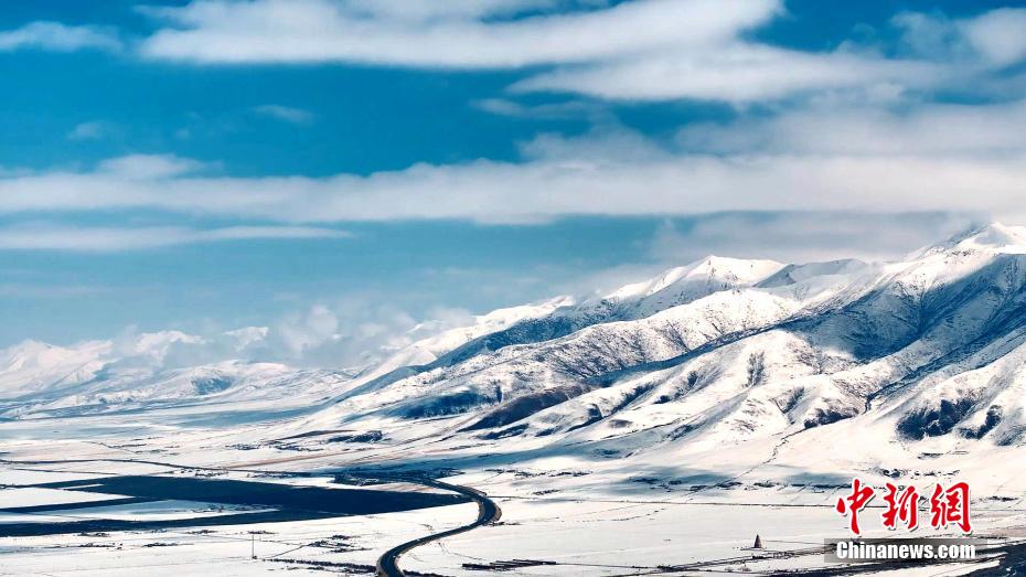 近日,在青海省海北藏族自治州門源縣境內(nèi),攝影師用航拍鏡頭記錄下巍峨祁連山的春日雪景,陽光透過云層,照射在白雪覆蓋的世界,靜謐純凈。藍天、白云、山巒、大地相互映照,山河壯麗盡收眼底。