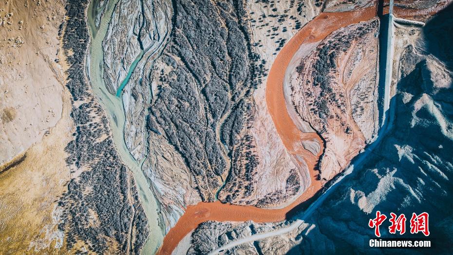 3月20日,青海省海西蒙古族藏族自治州都蘭縣,航拍兩條河流在香加鄉(xiāng)洪水川交匯處出現(xiàn)的“涇渭分明”景觀。[詳細(xì)]