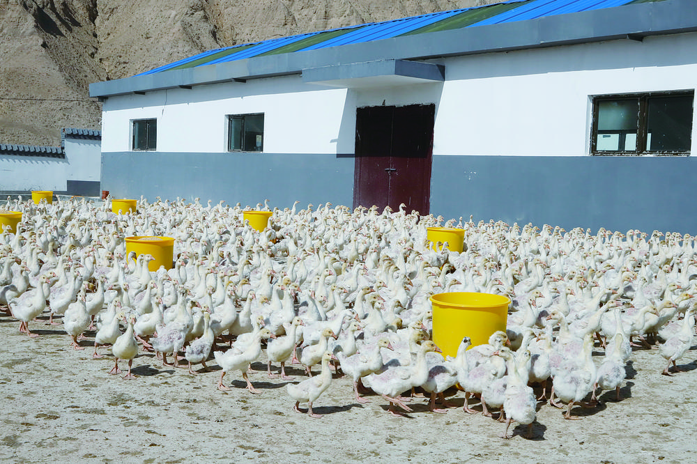 色爾加村黨支部書記羊壯項杰看著成群的種鵝,向記者介紹,“幸福鵝”進入到生長的關(guān)鍵時期,飼養(yǎng)員給鵝換上了精粗結(jié)合的飼料補充營養(yǎng),等鵝長得又大又壯,出籠的時候能賣個好價錢。
