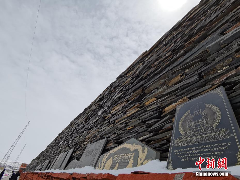 青海省玉樹藏族自治州玉樹市勒巴溝內(nèi)的“山瑪尼”。馬銘言 攝