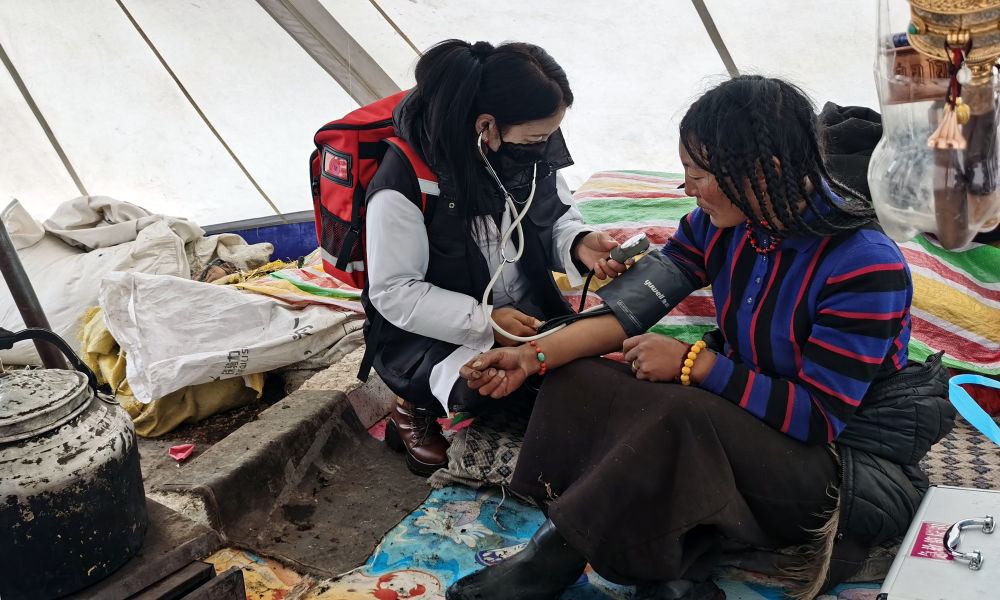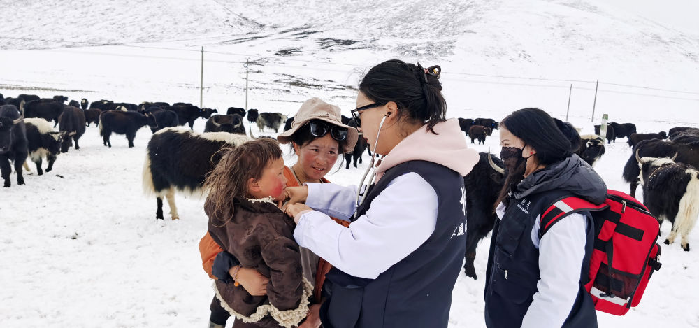 近期,四川省甘孜藏族自治州理塘縣連降大雪,路面結(jié)冰,交通不便,導致居住在海拔4000多米遠牧區(qū)的牧民遇到看病難等問題。理塘縣村戈鄉(xiāng)中心衛(wèi)生院組織家庭醫(yī)生團隊,冒著風雪前往遠牧區(qū),為慢性病患者、孕產(chǎn)婦、老年人及小孩等送醫(yī)送藥。
