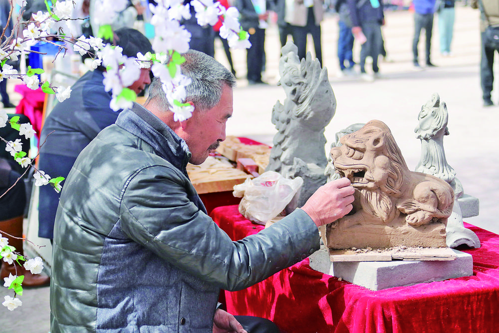 開幕式現(xiàn)場,手藝人正在創(chuàng)作。