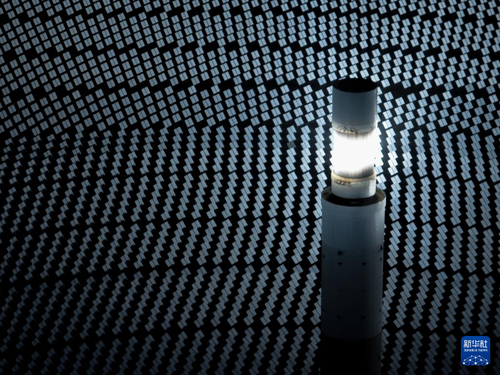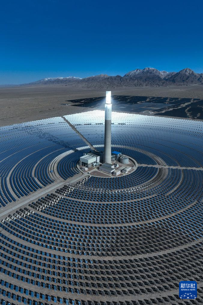 這是4月23日在青海省海西蒙古族藏族自治州德令哈市光伏(光熱)產(chǎn)業(yè)園拍攝的光熱電站(無人機全景照片)。新華社記者 張龍 攝