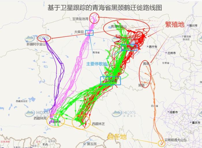同時(shí),青海省林草局經(jīng)過(guò)連續(xù)調(diào)查研究,掌握了甘肅鹽池灣和新疆阿爾金山2個(gè)繁殖種群遷徙過(guò)程中都經(jīng)過(guò)青海停歇后,最終飛往西藏林周區(qū)域進(jìn)行越冬的情況。