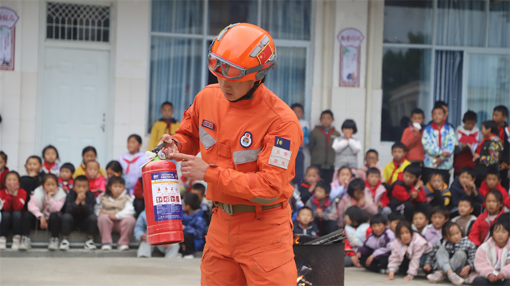 此次演練,迪慶州森林消防大隊(duì)維西駐防分隊(duì)結(jié)合校園設(shè)施實(shí)際和校園消防安全特點(diǎn),著重對(duì)發(fā)生地震、火災(zāi)時(shí)如何正確逃生等內(nèi)容進(jìn)行了詳細(xì)講解示范和演習(xí)演練。為讓師生們能夠更直觀地了解掌握滅火器及其操作與使用,活動(dòng)專門(mén)設(shè)置了模擬火情,由指戰(zhàn)員現(xiàn)場(chǎng)演示滅火器操作使用,并指導(dǎo)多名師生練習(xí)和操作使用滅火器。