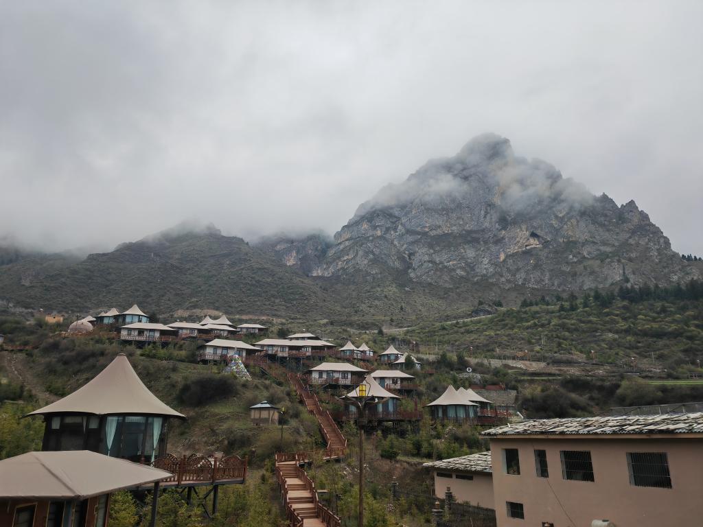 從道杰東主的民宿繼續(xù)往上走,有一間“云境野舍帳篷酒店”,一棟棟如同帳篷般的獨(dú)立房間依山而建。