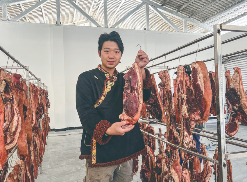 在洛桑和鄉(xiāng)親們的共同努力下,第一批“等風(fēng)兔”即食手撕兔產(chǎn)品成功面市。同年6月,洛桑與妻子帶著這些手撕兔來到第十九屆中國西部國際博覽會,經(jīng)“線上+線下”模式銷售,很快便搶購一空。