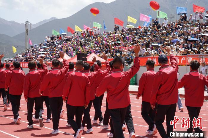 圖為海北祁連山藏羊隊(duì)隊(duì)員入場和觀眾揮手致意。馬銘言 攝